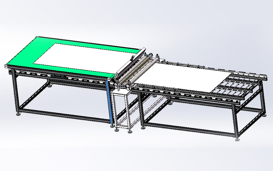 本生產(chǎn)線依據(jù)用戶需求,進行“量身”設計,由層壓前鋪設傳輸線;通過不同機構的傳輸、轉運、變向、定位、旋轉/釋放實現(xiàn)組件封裝過程的流水化操作,可提高單位組件生產(chǎn)效率。